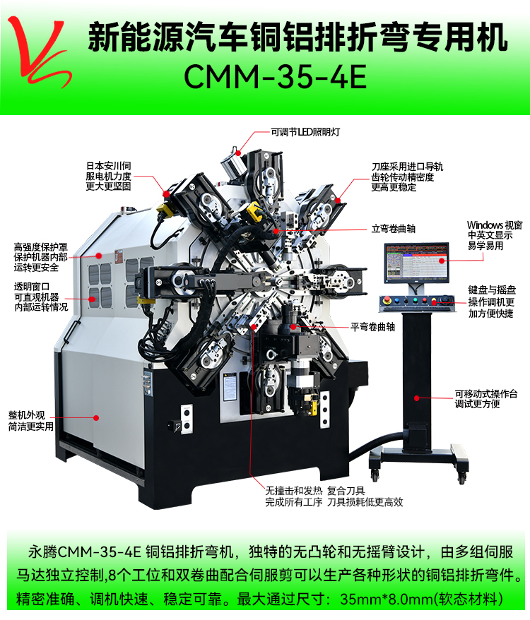 2、擁有傳統(tǒng)8工位機(jī)械之優(yōu)點(diǎn)、并兼?zhèn)?組自由手,可以上下、左右、自由發(fā)揮(生產(chǎn)高難度的銅鋁排折彎件,更容易、更快捷、更精密)。