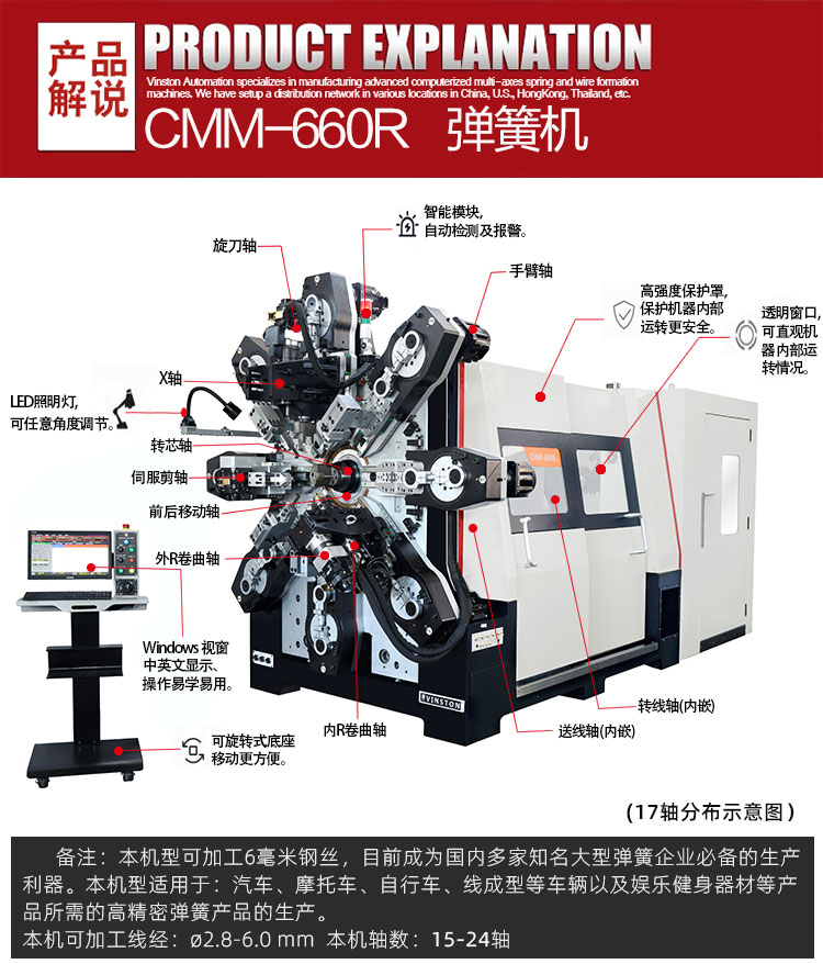 本機型適用于汽車、摩托車、自行車、線成型等車輛以及娛樂健身器材等產品所需的高精密彈簧產品的生產。