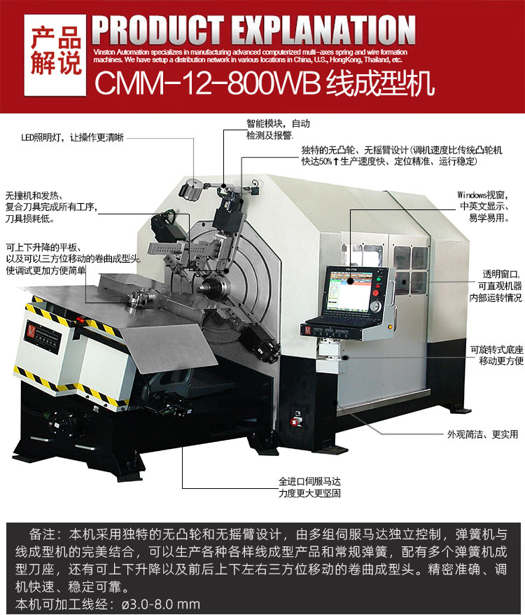 2、可加工4毫米鋼絲或6毫米軟線,目前成為國內(nèi)多家知名大型彈簧和線材成型企業(yè)必備的生產(chǎn)利器。